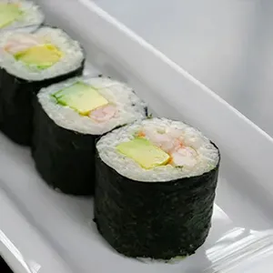 Camarón, palta o queso crema envuelto en nori (6 cortes)